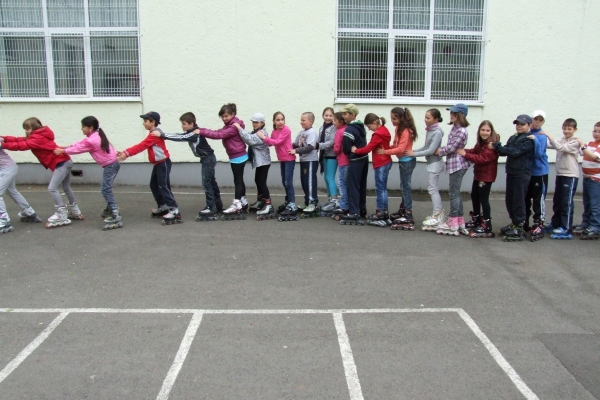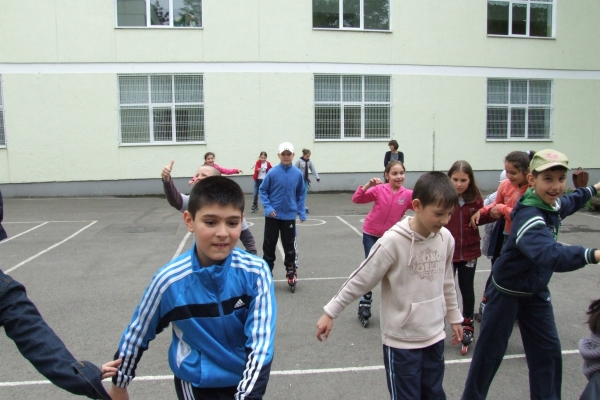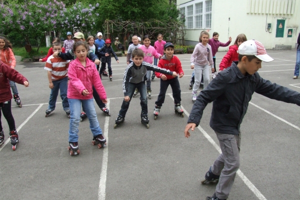 Descriere: Vremea de azi nu e prea prietenoasa. Tragem din cand in cand cu ochiul pe fereastra clasei si ne spunem in gand: "De n-ar ploua!" Si asta pentru ca, dupa ore, vom iesi in curtea scolii sa facem miscare pe role. Dupa cateva probleme de geometrie si o ora de educatie civica, ne echipam si ne simtim ca pe patinoar pe asfaltul din curte. E multa veselie! Unii sunt mai priceputi, altii doar incepatori. Ii ajutam si pe ei! Facem apoi o stafeta, pe care au castigat-o baietii...Fetele, insa, nu se supara. La sfarsit Claudiu ne spune: "Niciodata n-am mers atat de mult pe role. Desi preferata mea e bicicleta, azi m-am simtit foarte bine alaturi de colegii mei!"