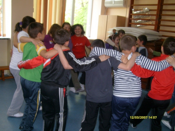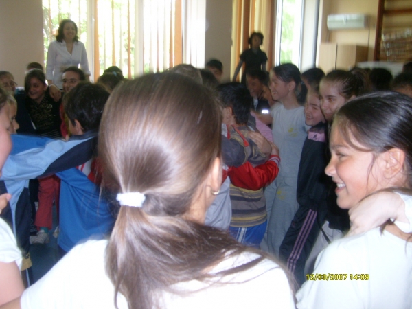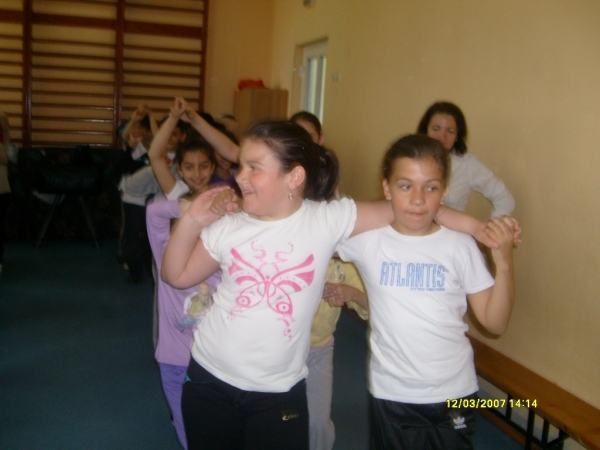 Descriere: Este 29 aprilie 2011,o zi frumoasa dar si o zi de sarbatoare. Si ce face romanul cand vrea sa sarbatoreasca? Ati ghicit!Danseaza!! Acelasi lucru am facut si noi,toti elevii claselor a-III-a din scoala noastra. Cu mic cu mare(la inaltime nu la varsta),ne-am incolonat si,in pasi de dans am pornit spre sala de sport. Am debutat cu dansuri populare romanesti:Alunelul,Hora,Sarba si Brasoveanca,ca doar suntem romani,nu? Dar atmosfera s-a incins atunci cand si-au facut aparitia acordurile Culturii Hip-Hop.In ritmuri de rap si breakdance am dansat pana cand oboseala a inceput sa-si spuna cuvantul. Ca sa ne mai tragem putin sufletul,am lasat cateva perechi sa ne destinda cu dansuri de societate de salon(valsul lent si tangoul clasic) dar si cu dansuri de societate latino(cha-cha). In final,meneaito si macarena au sculat in picioare toti dansatorii,fie ei amatori sau profesionisti. Si uite asa,nici nu am simtit cand a trecut timpul si ne-am pregatit de plecare. Va invitam pe toti sa faceti miscare prin dans!