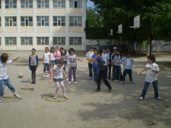 Descriere: In pauza aceasta ne-am gandit sa facem un concurs de gimnastica. "a Cui e coronita?" Unii au scapat cercul, altii s-au ajutat de maini, dar in final si fetele si baietii au castigat "coronita". Sunt minunate aceste pauze de la scoala, dar cam scurte! Noroc ca mai avem inca 2!