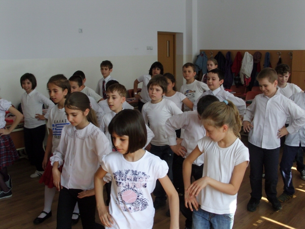 Descriere: Astãzi, dupã ore ne-am propus ca toți sã învãțãm câțiva pași de dans. Pe muzicã am dansat pași de samba, pași de cha-cha, pași de jive, pași de rumba, pași de samba, pași de vals vienez și lucrare cu mâinile la rumba. La sfârșit am dansat în perechi pași de vals vienez. Urmãriți imaginile!