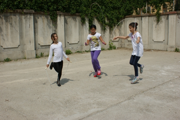 Descriere: Activitatea a avut ca scop formarea deprinderii de a executa exercitii care ajuta la mentinerea unui aspect armonios al corpului si a sanatatii. Fetele au sarit coarda in reprize de cate 25 de sarituri, fiind grupate cate 3.