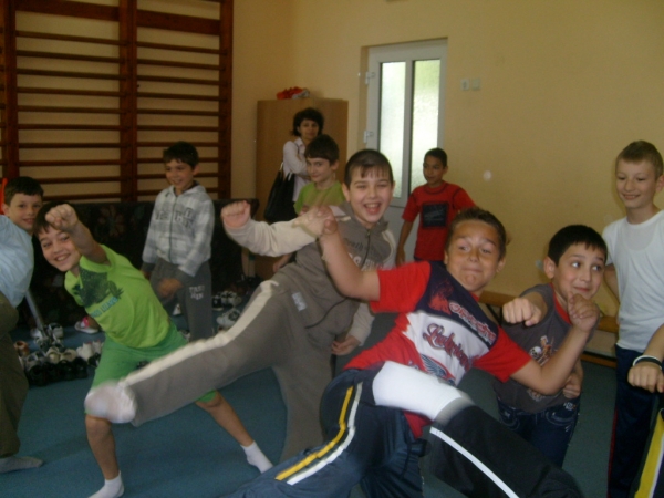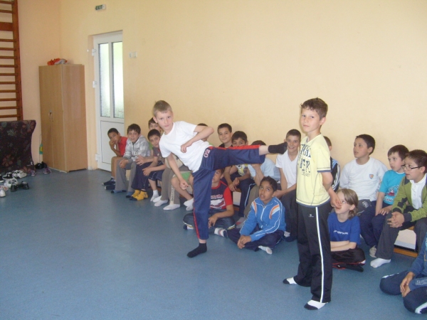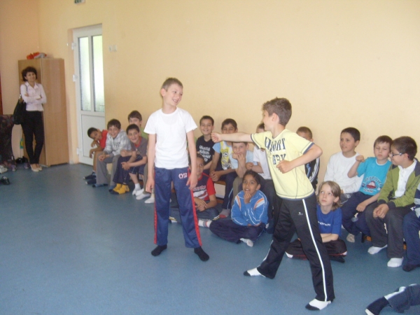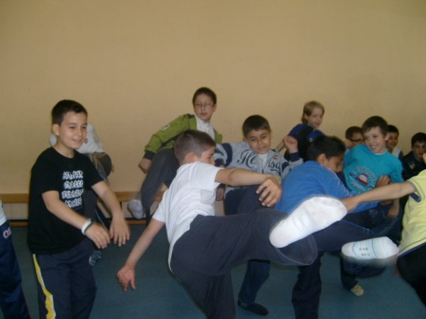 Descriere: In viata ne confruntam cu multe si diferite probleme.Unii dintre noi au inteles acest lucru si au decis sa invete si sa practice un sport care sa-i ajute sa se apere-karate. Dupa ce ne-au explicat ce inseamna pentru ei karate:aparare,reguli de respectat si mai ales miscare,am desis sa invatam si noi cateva dintre miscarile practicate in acest sport. Chiar daca a fost greu putem spune ca suntem convinsi sa incercam si noi! Suntem siguri ca vom reusi!