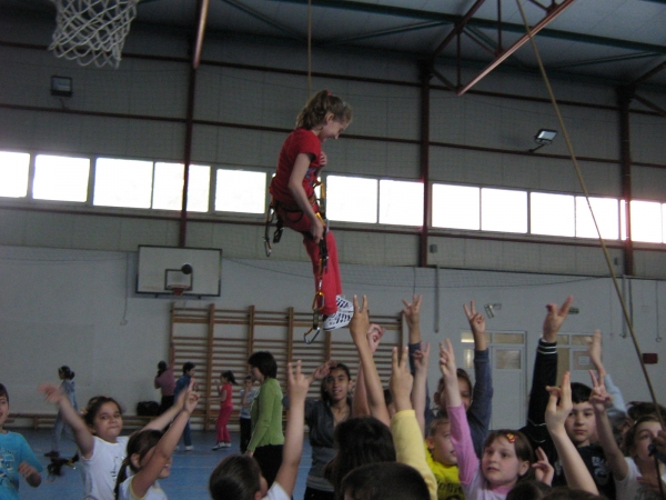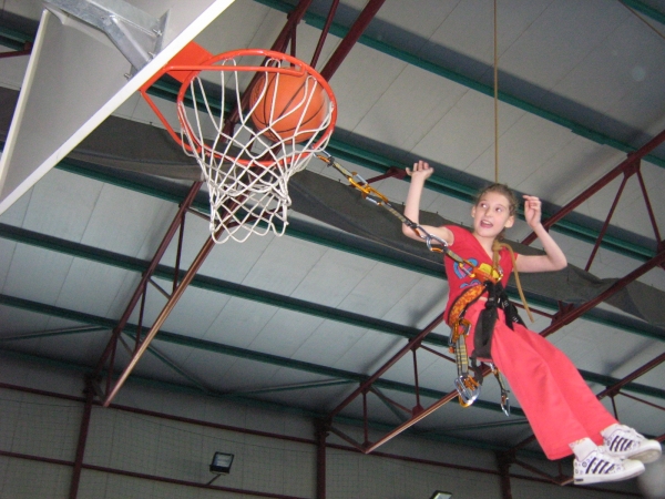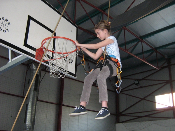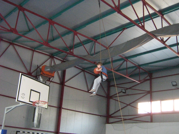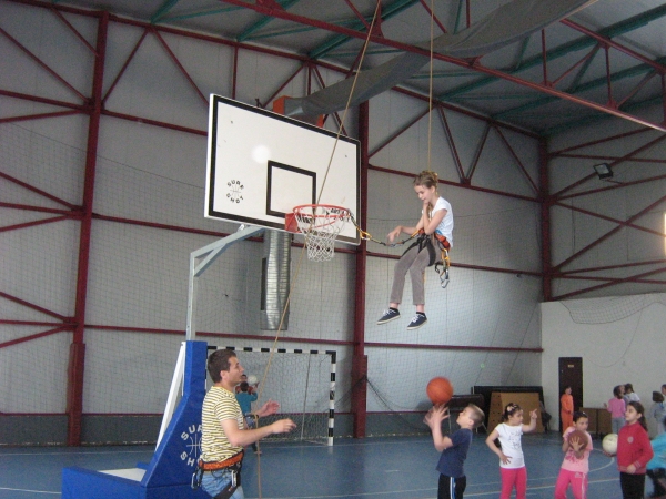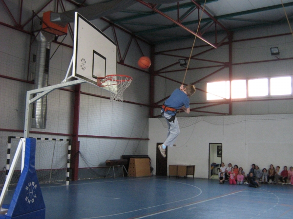 Descriere: Dupã ce am studiat manualul Sets, ne-a venit o idee nãstrușnicã: Ce-ar fi sã combinãm douã sporturi și sã inventãm ceva nou? Zis și fãcut: dupã mai multe idei, care mai de care mai amuzante, a apãrut BASCHETO-ALPINISMUL, mai ales cã aveam ciudã pe coșul de baschet care este prea sus pentru noi, picii de clasa a III-a. Am apelat iar la ajutorul domnilor profesori de educație fizicã și priviți ce am reușit: senzații tari și acrobații la înãlțime!