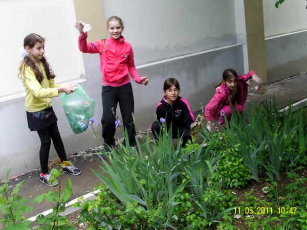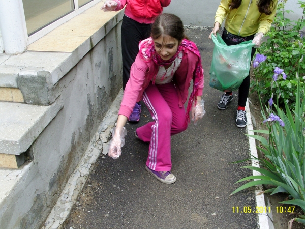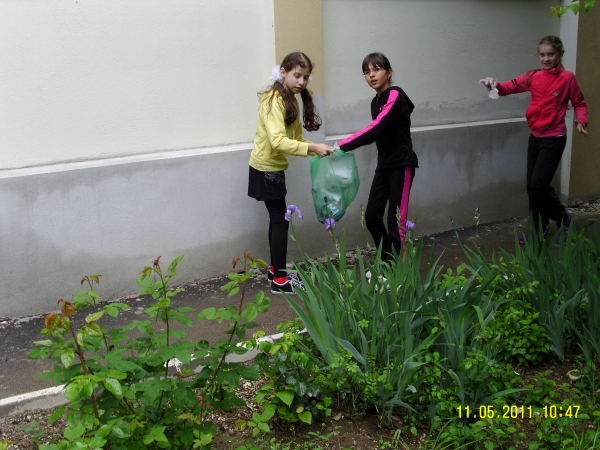 Descriere: Am ales sã facem mișcare adunând gunoaiele din curtea școlii și din exteriorul gardului școlii. Credem cã am împușcat doi iepuri: am fãcut și mișcare și avem și curtea școlii curatã.