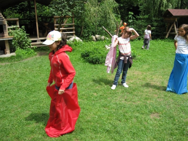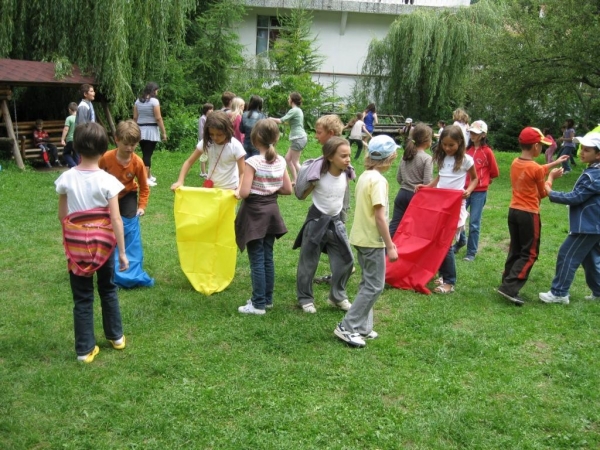 Descriere: In dimineata zilei de duminica, in cadrul programului "Si eu traiesc sanatos" am organizat pe terenul din spatele complexului Angelica activitati intitulate "Stafete combinate". Printre acestea se numara "Cursa in saci", "Plimba oul", "Mingea calatoare".