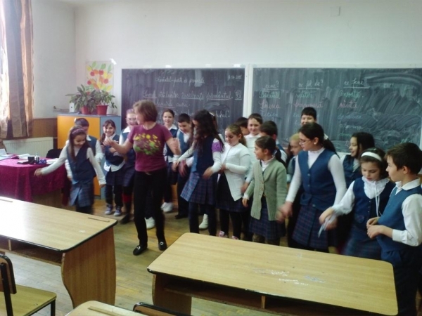 Descriere: Nimic nu le face mai mare placere copiilor ca jocul... poate doar dansul!!!! Dupa incalzire elevii au exersat pe perechi sau individual pasi de salsa si de asemenea au fost lasati sa isi incerce si propriile coregrafii pe melodii propuse de ei.