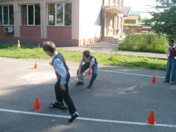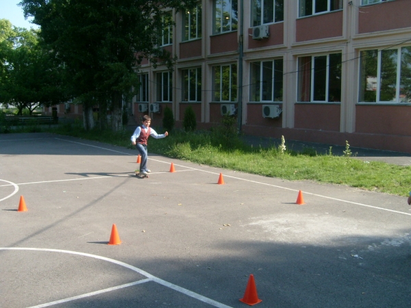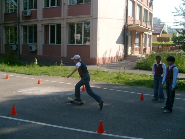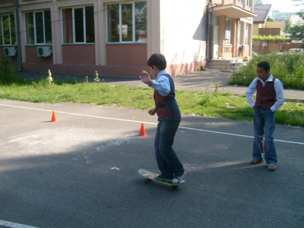 Descriere: A sosit momentul sa invatam si un sport mai riscant.Skateboard nu este un sport prea usor,trebuie sa recunoastem. Dar pentru ca avem un coleg initiat in aceasta activitate,lucrurile parca au mers mai usor. Fetele au preferat sa joace un meci de fotbal iar baietii si-au etalat calitatile cu placa de skateboard. La final am exersat si o aruncare la cosul de baschet,chiar daca mingea nu a fost tocmai potrivita.