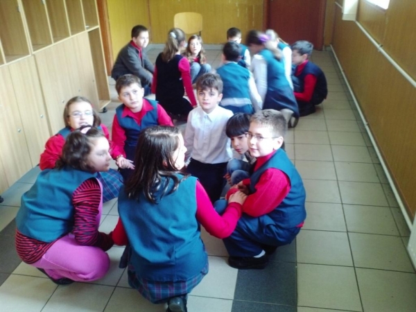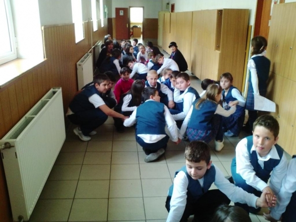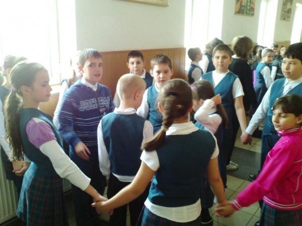 Descriere: Pe holul scolii, impartiti in echipe, am hotarat sa jucam o hora. Copiii au fost incantati sa se relaxeze si sa faca putina miscare in pauza mare.