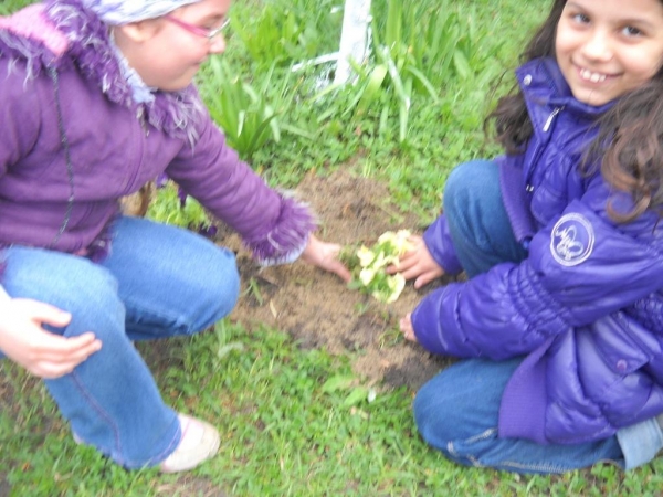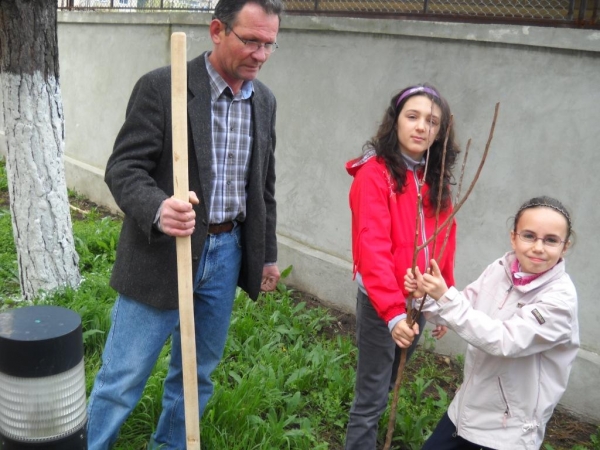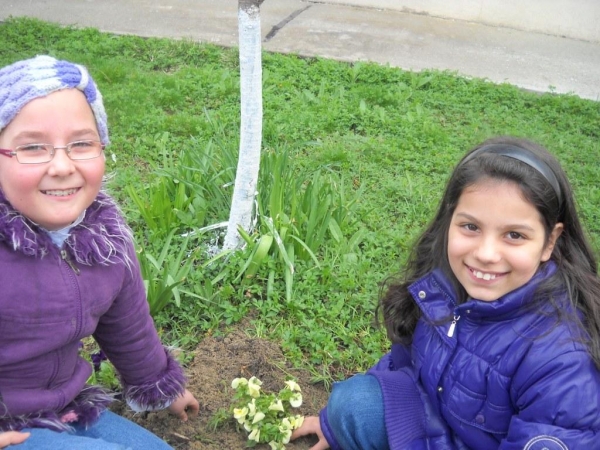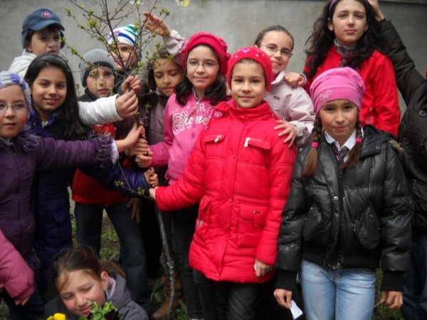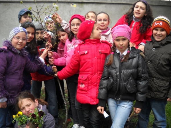 Descriere: Copiii au desfasurat o activitate de plantare a unor flori si pomisori in curtea scolii. Ei au plantat un ienupar, un salcam, un liliac si mai multe panselute. Aceasta activitate s-a desfasurat intr-un interval de 60 minute, timp in care copiii au fost foarte bucurosi si in felul acesta ei si-au pus in practica cunostintele dobandite naterior in orele de cunoasterea mediului sperand astfel ca daca vor proceda si alti elevi la fel ca ei, se vor crea mai multe spatii verzi si vom respira un aer de calitate superioara.