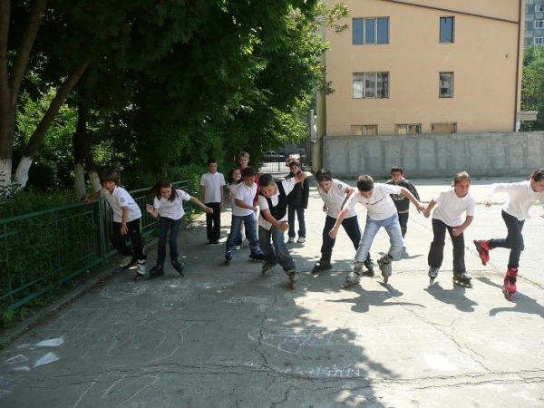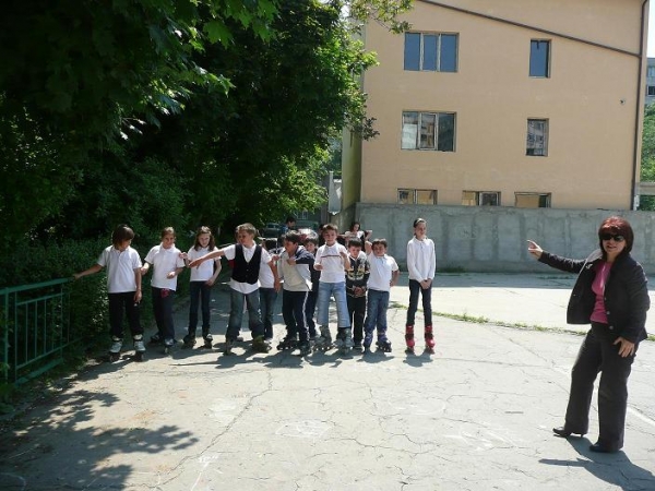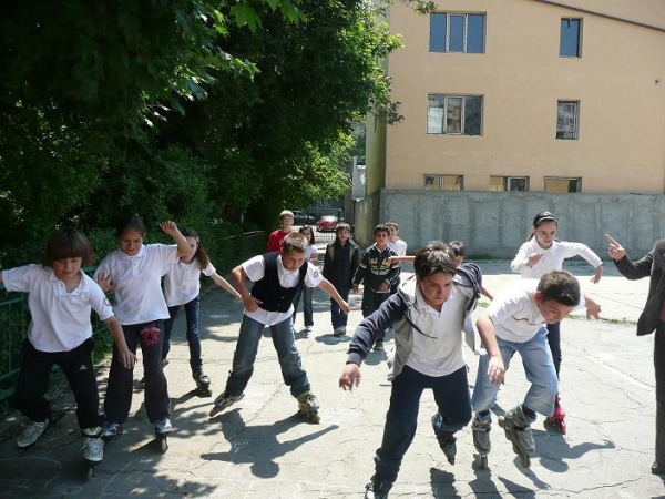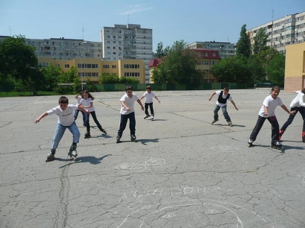 Descriere: Dupa orele de curs, am organizat in curtea scolii noastre, un concurs de role. Desi nu au avut toti elevii din clasa, role, au imprumutat de la colegii lor, astfel reusind sa participe la concurs.
