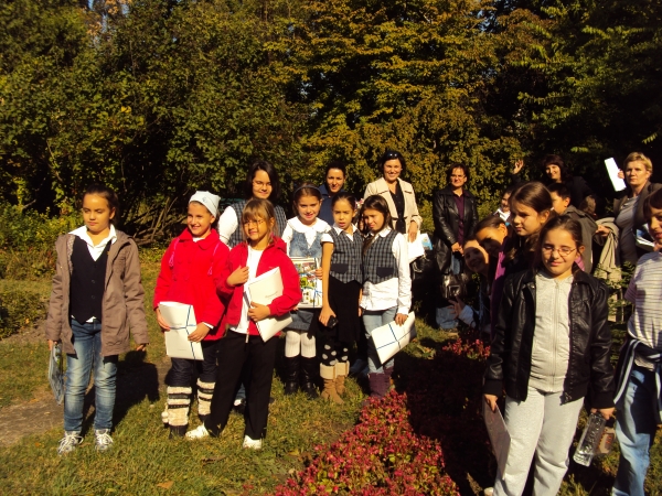 Descriere: Cateva eleve din clasa a IV-a A au facut o plimbare prin Gradina Botanica, cu prilejul festivitatii de premiere organizata de firma Panasonic Romania "Concursul florilor"