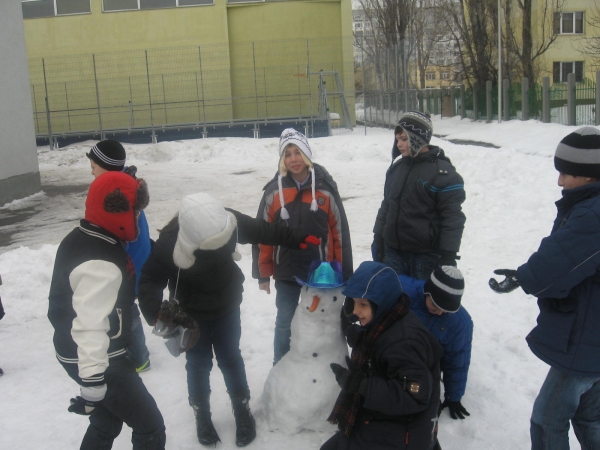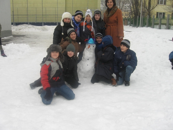 Descriere: Toþi copiii sunt încântaþi de zãpada abundentã care a acoperit natura. Ne-am hotãrât sã ieºim ºi sã ridicãm un om de zãpadã în curtea ºcolii. Fiecare elev a încercat sã participe cu ceva la realizarea obiectivului nostru: omul de zãpadã. În final, a ieºit ceva frumos, mai ales cã ne-am distrat ºi relaxat în omãtul pufos.
