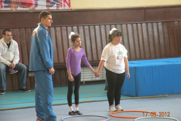 Descriere: La clubul ANEFS a vut loc o demonstratie avand ca scop o actiune caritabila pentru copiii cu sindromul Down. Copiii de la clasele a IVa A si F, printre care si Savoiu Anca , Baban Neacsu Ioana si altii au facut cateva exercitii fizice alaturi de cei cu probleme de sanatate. Au invatat ce inseamna voluntariatul !
