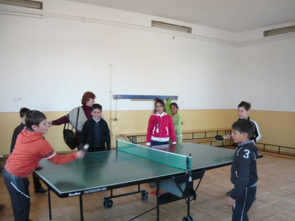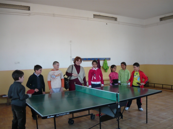 Descriere: Pe data de 24 februarie, elevii clasei a III-a, impreuna cu invatatoarea lor,Acatrinei Ioana, au decis sa se dezmorteasca dupa ore,facand un pic de miscare.Cum afara a fost rece, s-au dus la sala de sport si au ales unul din jocurile lor preferate...tenisul de masa.Si chiar s-au distrat.