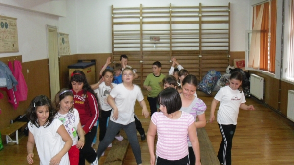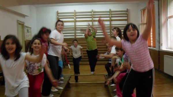 Descriere: Azi, 4 mai, a fost o zi stresanta si solicitanta. Eram epuizati . Am mers in sala de sport a scolii si am inceput sa ne simtim " cu adevarat copii". Sub indrumarea doamnei invatatoare Maria Guta, ne-am distrat pe ritmuri muzicale antrenante si am initiat " hora stresului". Dupa aproape 55 de minute toti eram fericiti si plini de viata . Tot sa mergi la scoala cu placere! Urmati-ne exemplul si nu veti regreta! Colectivul clubului PEBLLES