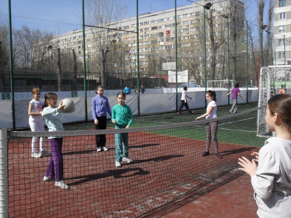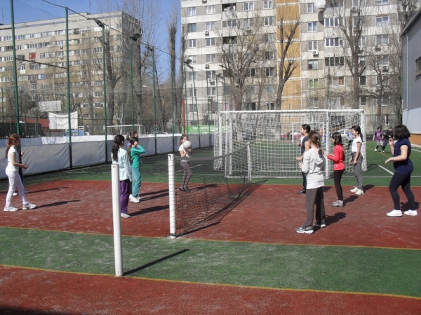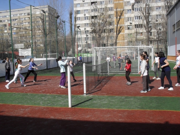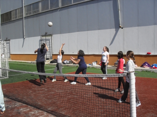 Descriere: Fetele din clasa a IV-a A au jucat volei pe terenul de sport pe data de 2 aprilie 2012