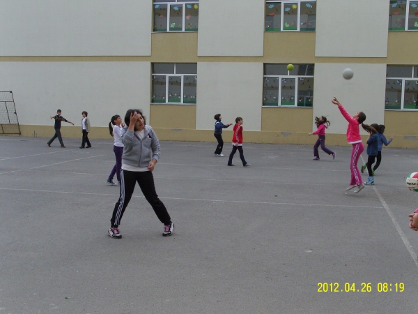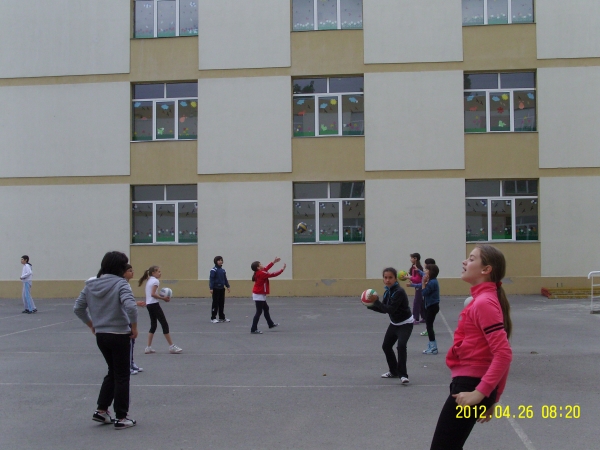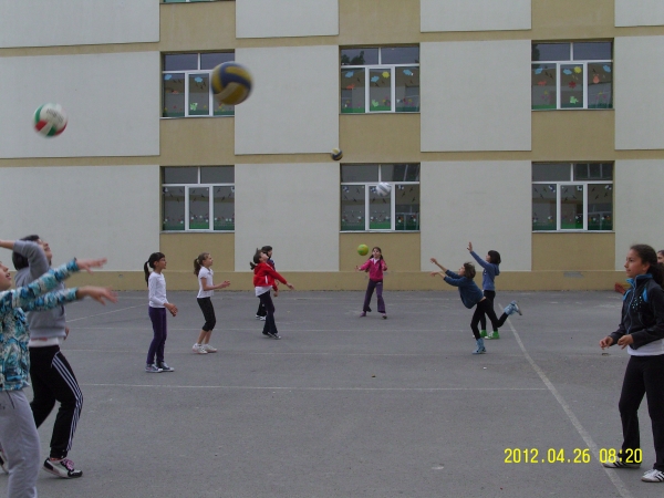 Descriere: Ne-am impartit in doua echipe: echipa fetelor si echipa baietilor. Cu totii dorim sa stim sa jucam volei, dar pana atunci trebuie sa stim regulile acestui joc si cum se joaca.Ne-am luat rolul in serios si ne-am apucat de treaba. Fetele au executat: pasa de sus cu doua maini, pregatirea pentru lovituri de atac si pasa de jos cu doua maini. In acest timp, baietii au exersat serviciu, asezarea in teren si rotatia pentru serviciu.
