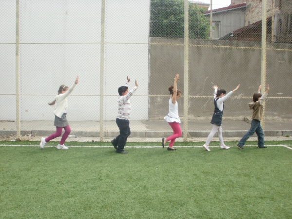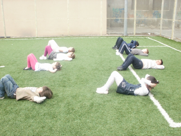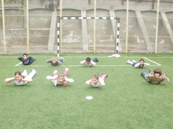 Descriere: Copiii au lucrat partea a doua din exercitiile fizice zilnice din cartea distribuita de organizator.