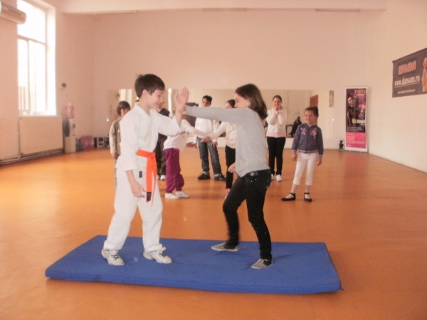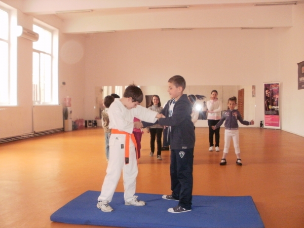Descriere: Cotruna Mihail, elev in clasa a II-a a facut o demonstratie de karate,prezentandu-le colegilor din clasele a II-a si a III-a miscari specifice (incalzirea- miscari ale capului, ale bratelor, lovituri la cap, la burta si sub centura, miscari de aparare, fluturasul; lovituri sub coasta in pereche.) La activitate au participat si membrii atrasi - elevii clasei a II-a.
