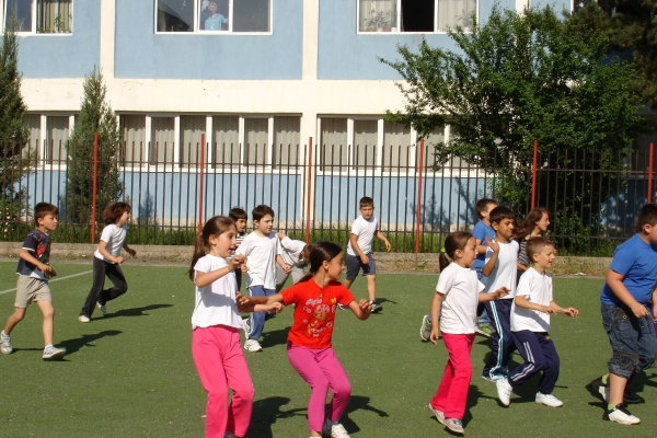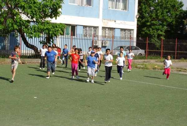 Descriere: Au fost desfasurate variate exercitii de alergare. De exemplu, copiii au fost grupati intr-un colt al terenului de sport si, in functie de indicatiile profesoarei de educatie fizica, trebuiau sa alerge spre un alt colt.