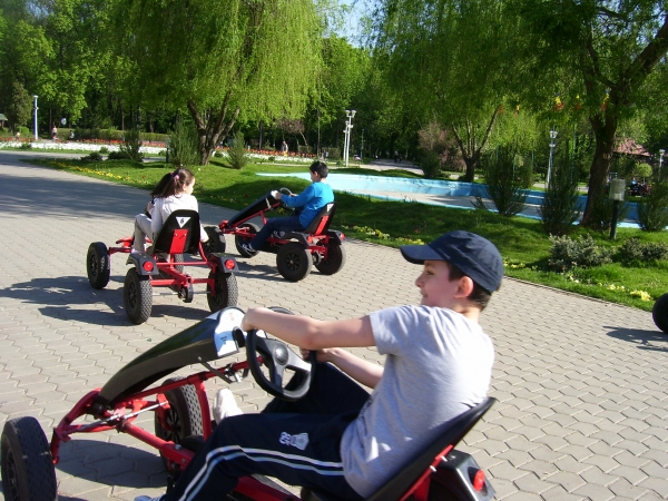 Descriere: Copiii s-au plimbat ºi au fãcut un concurs cu maºinuþele în parc.