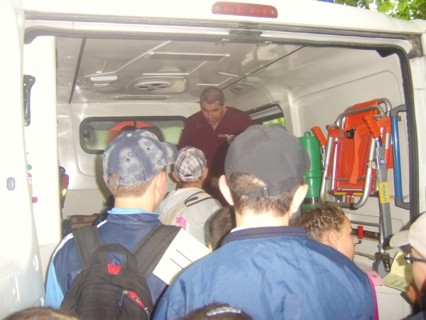 Descriere: O vizitã la stația de salvare, a fost foarte interesantã. Am aflat, din experiența paramedicilor, care erau de serviciu, cum se dã primul ajutor în caz de îmbolnãvire. Mașinile erau dotate cu aparaturã modernã.
