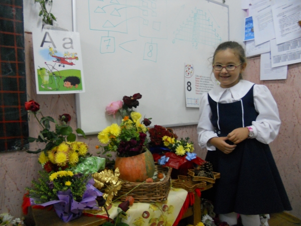 Descriere: O frumoasã expoziție floralã au realizat copiii de la clasa I D. Cu toții cu mic cu mare, au adus floricele și le-au așezat cu multã mãiestrie într-o expoziție pentru Ziua Școlii.